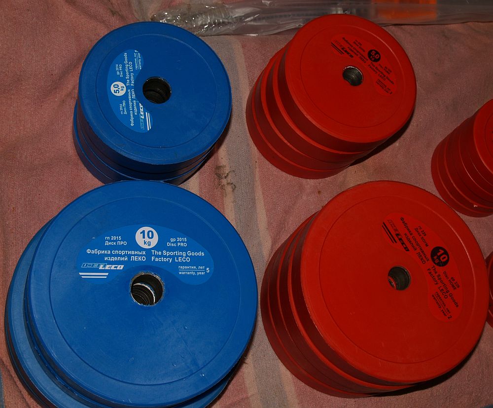 Штанга 93 кг - 9500 р., диски чугун; 79 кг - 10400 р., диски металл, покрытие винил.